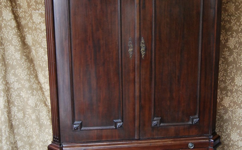 Original Mid-19th Century Solid Mahogany Estate Cupboard, with original carved wood mouldings, handles & key escutcheons, carved wood mouldings & corner friezes, in lovely condition with a beautiful finish, £1295